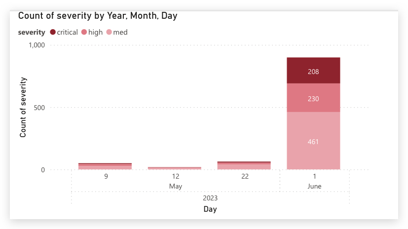 Managing your asset vulnerabilities over time is easy with preconfigured reports which display vulnerabilites by critically over time. This gives you a view of your assets over a given time period.